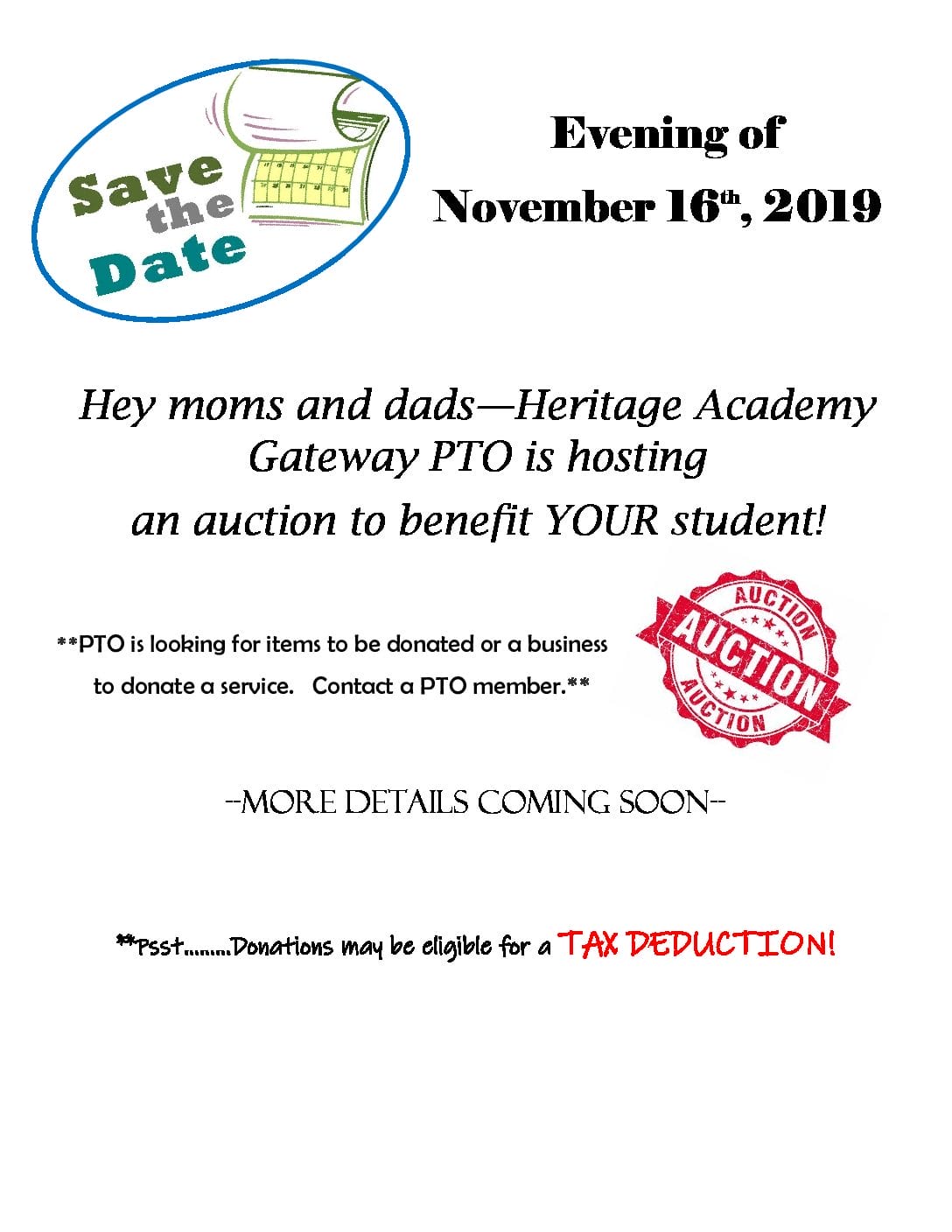 Email Mrs. Lewis if you are interested: slewis@heritageacademyaz.com